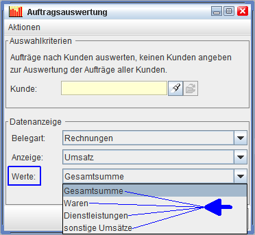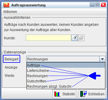 Bei der Auswahl der Belegart können Sie sich aussuchen, welche als Grundlage für die Auswertung dienen soll.