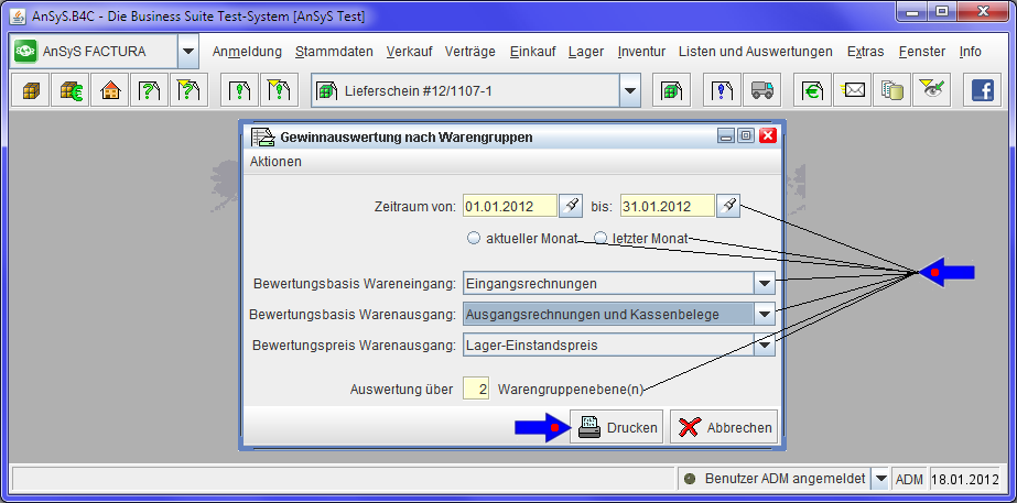 Wählen Sie nun den Zeitraum, den Sie ausgewertet haben möchten. Jetzt können Sie noch die Bewertungsbasis einstellen für den Wareneingang und Warenausgang. Danach legen Sie noch fest, welchen Bewertungspreis Sie zugrunde legen.