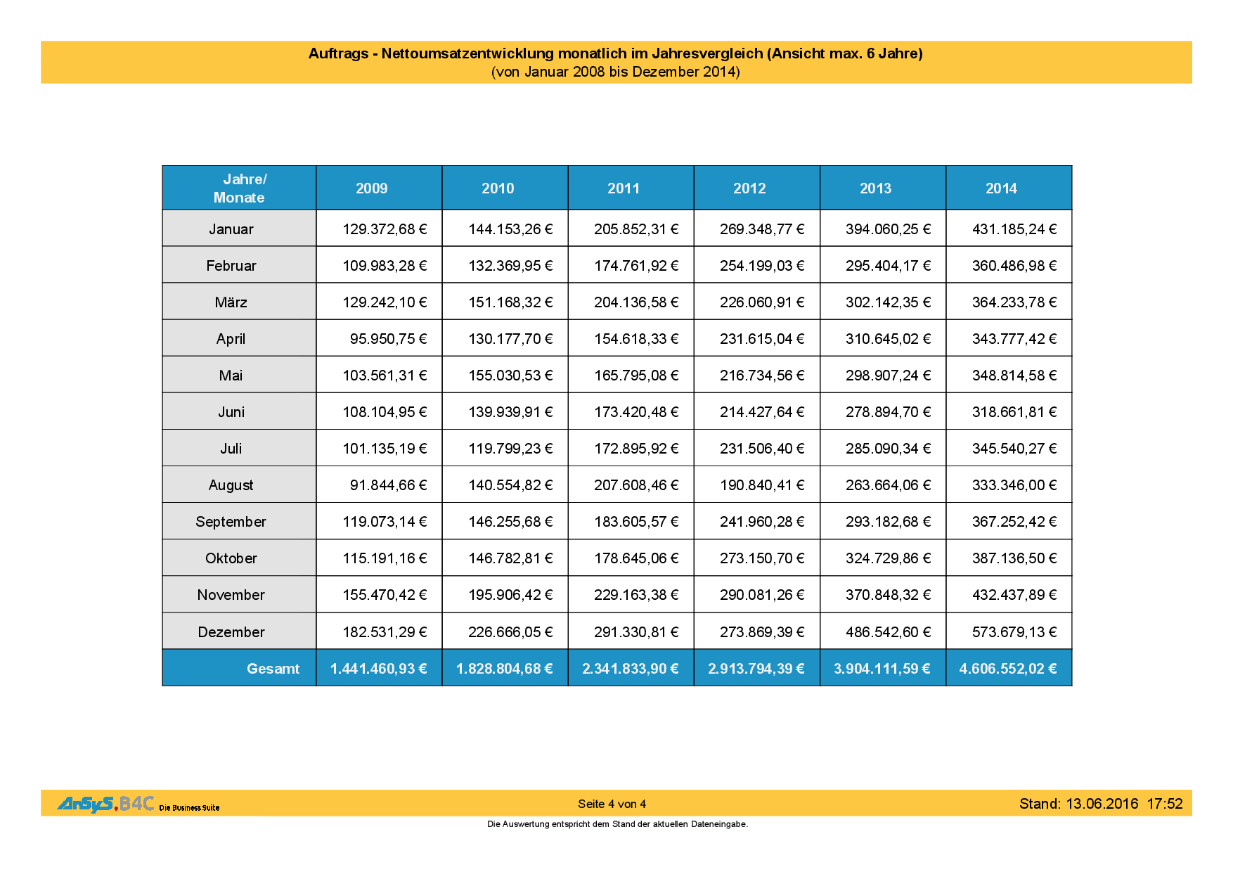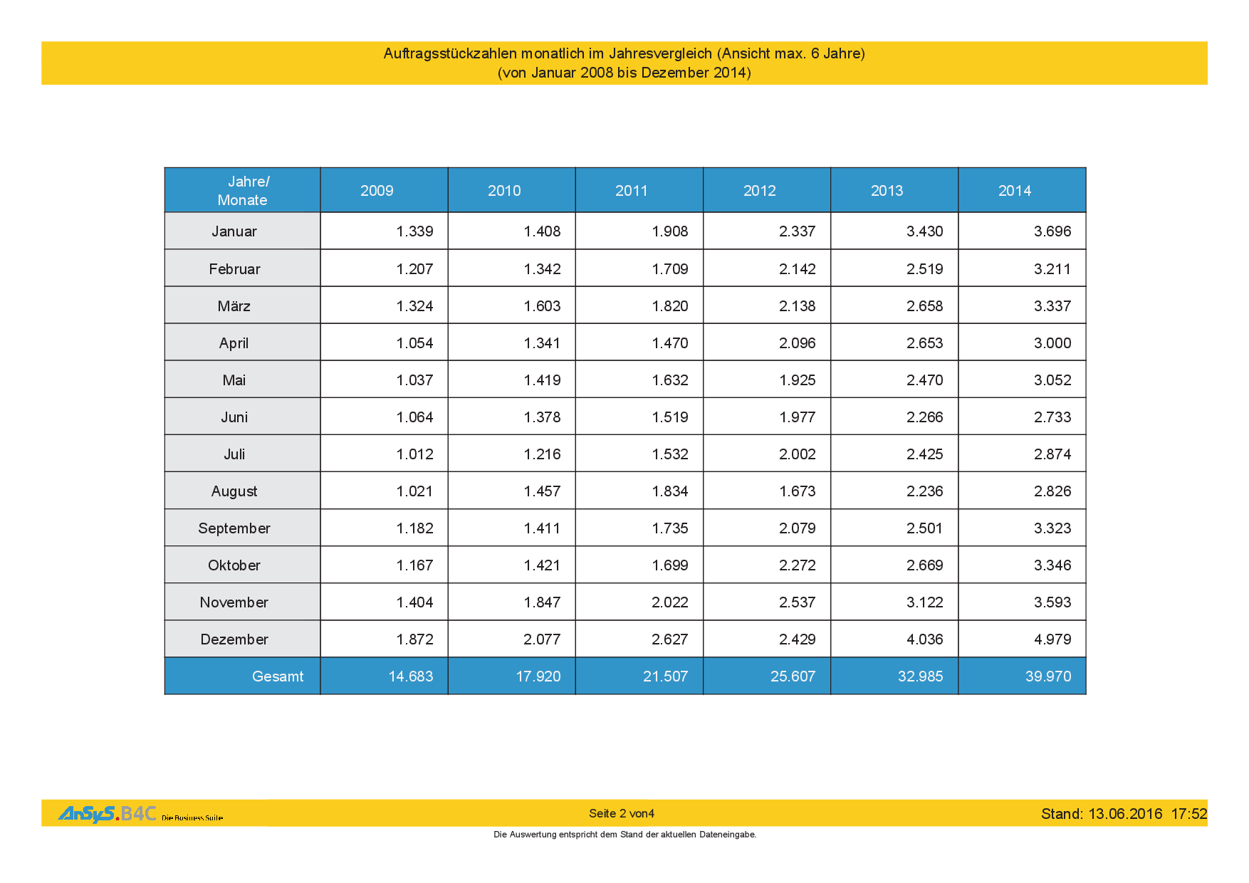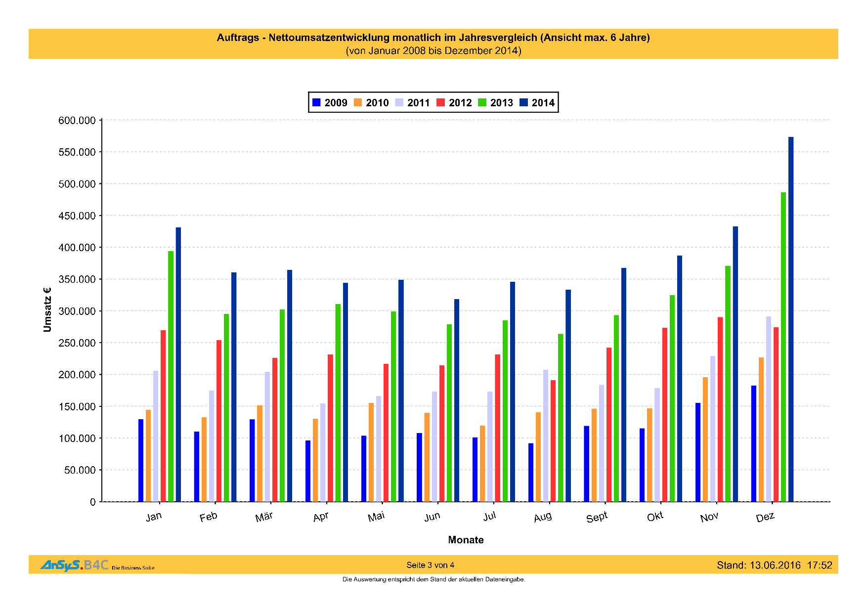 Auch hier kann man den kontinuierlichen Zuwachs schön beobachten in den Jahren und den einzelnen Monaten. Alle Zahlen im Blick heisst – man hat auch sein Unternehmen im Blick und kann entsprechend handeln wenn irgendwo eine Fehlentwicklung zu beobachten ist.