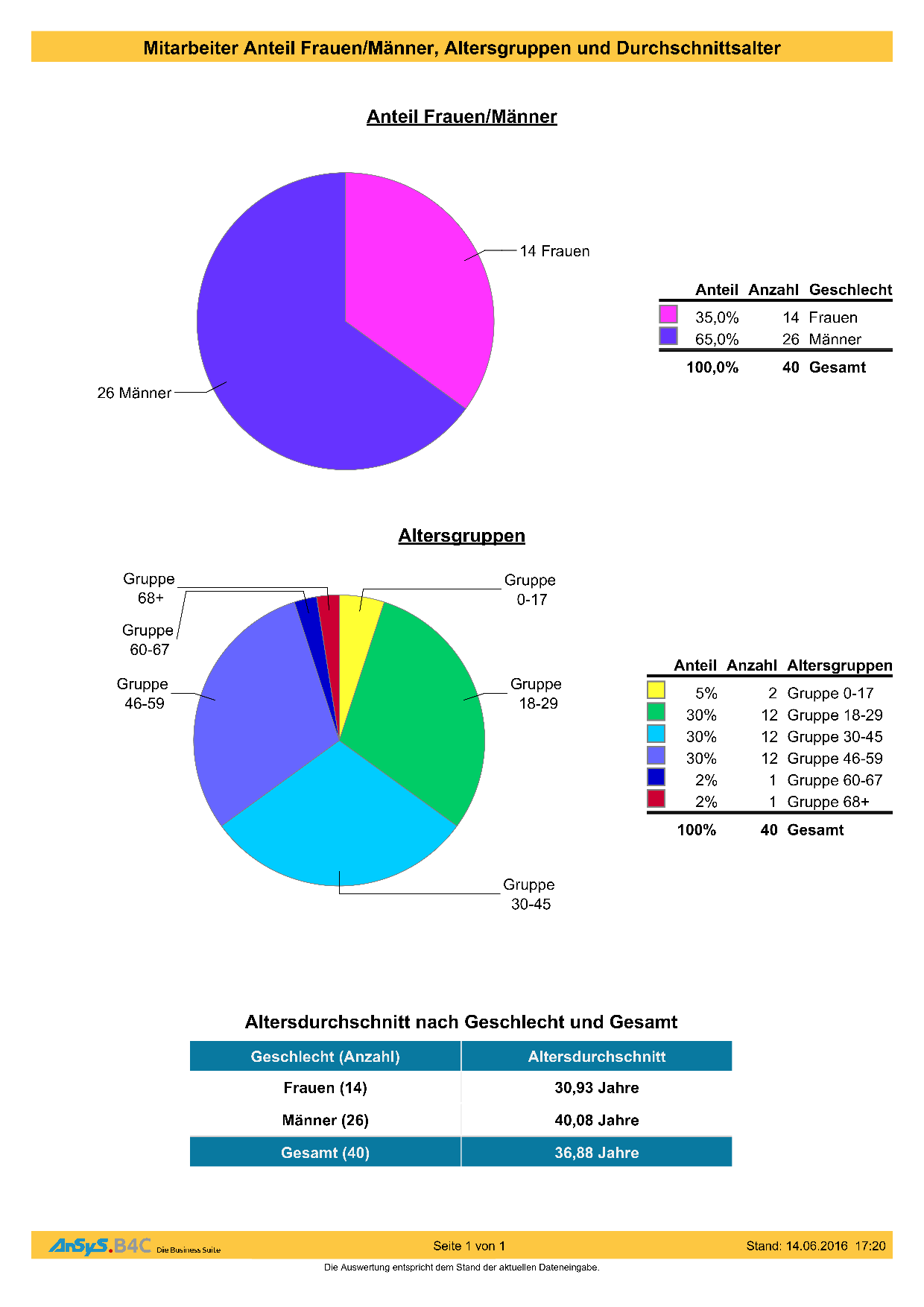 Zudem haben wir hier auch Altersgruppen formuliert, so das Sie auch noch Info über die Altersstruktur Ihrer Mitarbeiter erhalten.