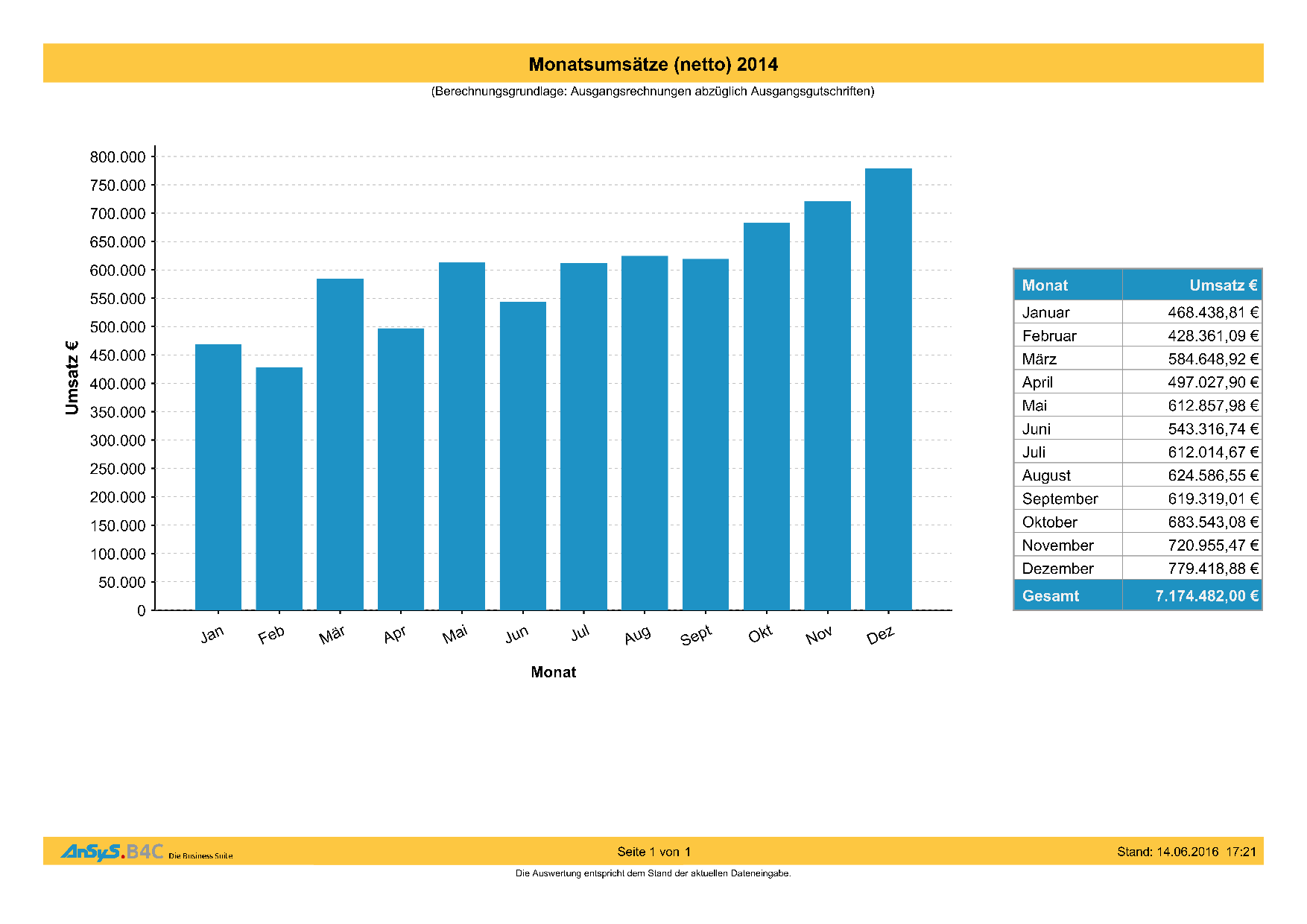 Wie der Name dieses Reports bereits suggeriert, handelt es sich hier um die Anzeige der monatlichen Umsätze im ausgewählten Jahr.