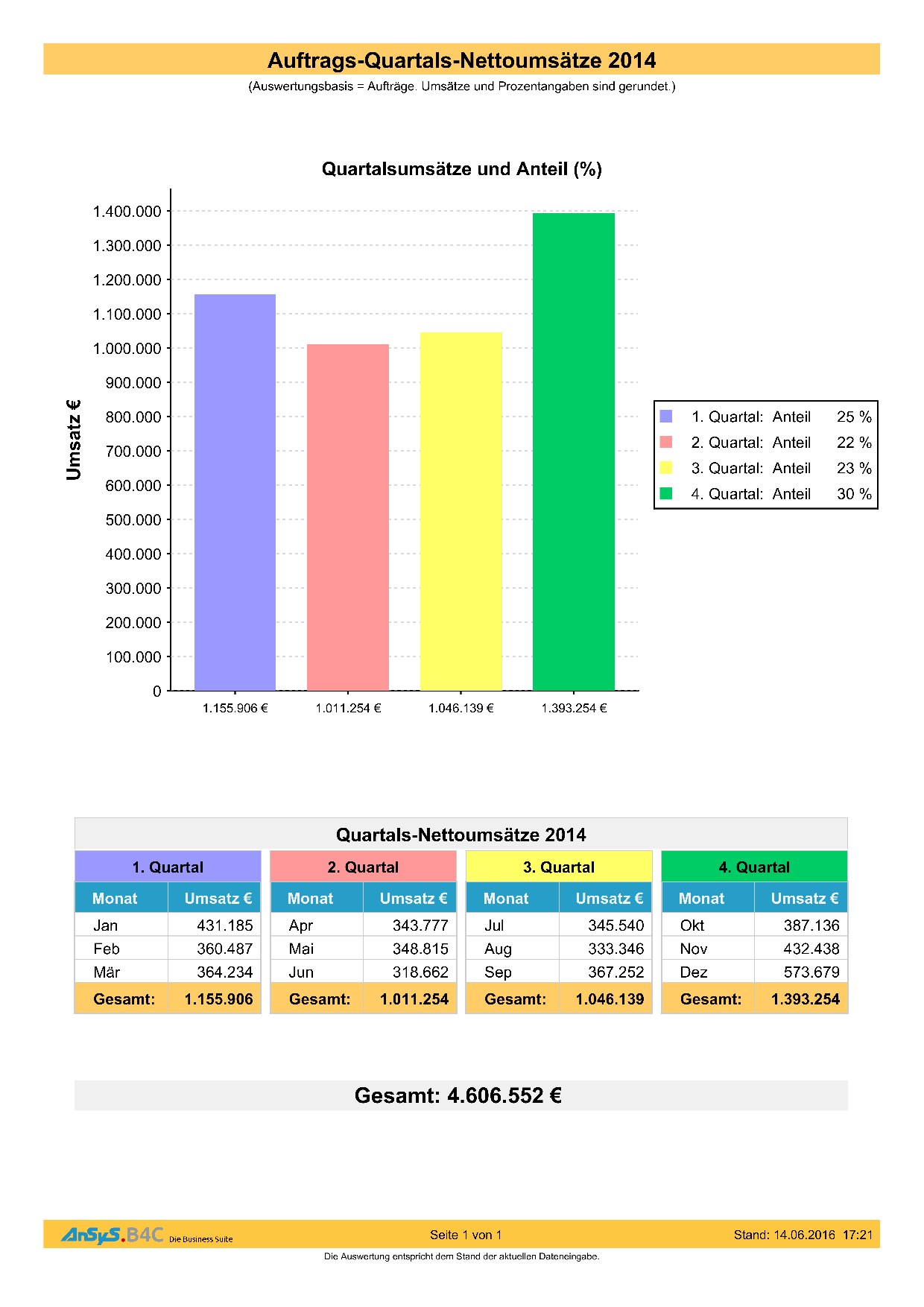 Nicht nur die Monatsumsätze in einem Unternehmen sind wichtig - auch die Quartalsumsätze. Auch diese Informationen sollte jedes Unternehmen regelmäßig auswerten.
