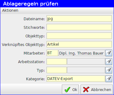 | Verknüpftes Objekt | Falls sie ihre Datei mit einer anderen Datei, Auftrag oder Sonstigem verknüpft haben, kann dies hier angegeben werden. |
