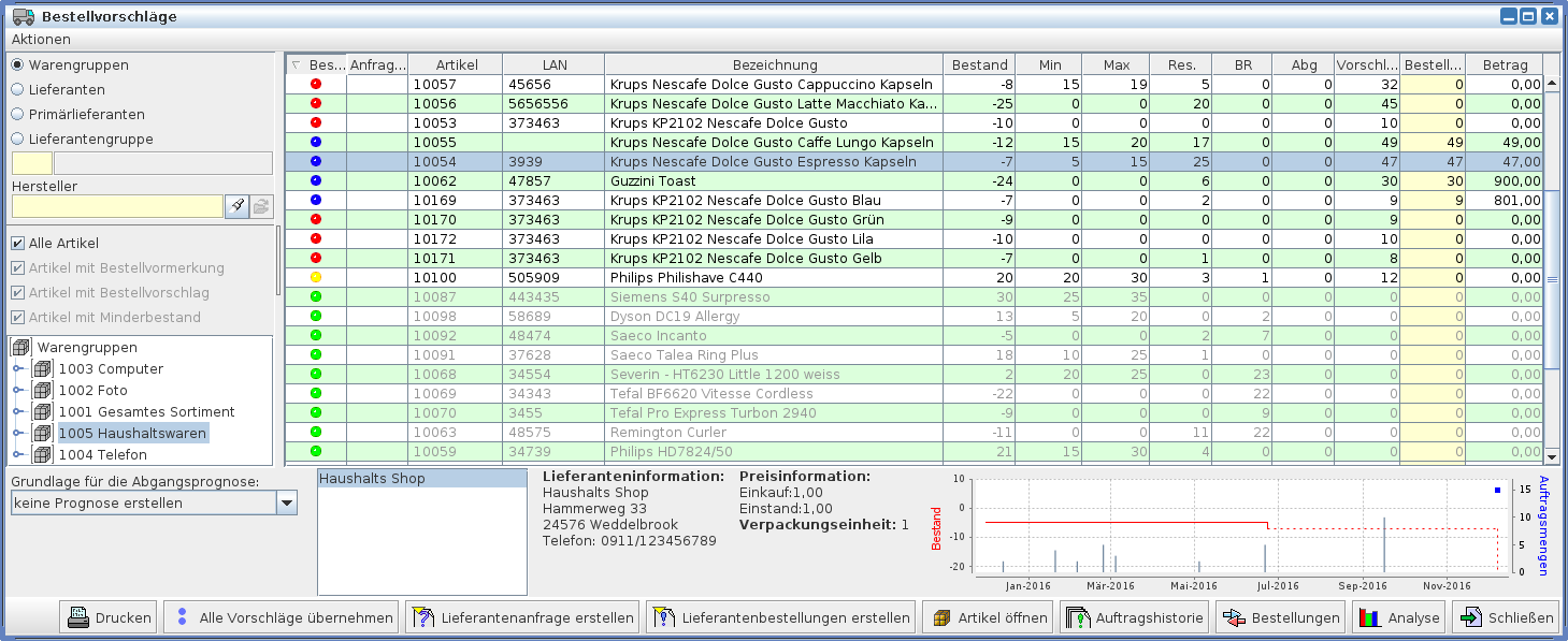 Bestellvorschläge dienen als Grundlage zur Generierung der Bestellungen und zur Prognoseerstellung.