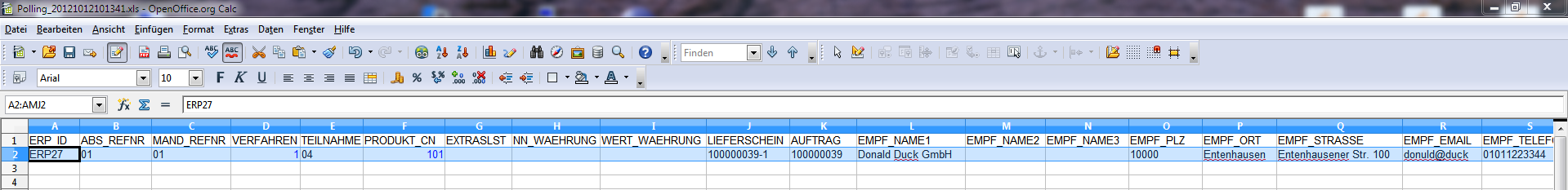 Hier sehen Sie nun wieder die Quelldatenfelder, die Sie den Zielfeldern zugeordnet haben. Da wo Daten vorhanden waren, sollten diese nun in den entsprechenden Spalten eingetragen sein. Wichtig sei an dieser Stelle noch einmal zu erwähnen, das auf jeden Fall in der Spalte 'ERP_ID' ein Eintrag vorhanden sein muss. Dieser Eintrag ist essentiell, für das spätere Einlesen der Trackingnummer. Wenn Sie nun täglich zu einer bestimmten Uhrzeit die Pollingdateien mit dem EaysyLog verarbeiten, entsteht wiederum eine ganz neue Datei, die in einem Verzeichnis auf Ihrem Server/Rechner gespeichert wird. Die Pollingdateien werden nach dem verarbeiten alle gelöscht. In dieser neuen Datei ist nun auch die Trackingnummer enthalten. Und diese neu entstandene Datei wird von uns verwendet, um die Trackingnummer in den Lieferschein einzulesen. Anhand der 'ERP_ID' erfolgt die richtige Zuordnung zu dem jeweiligen Lieferschein.