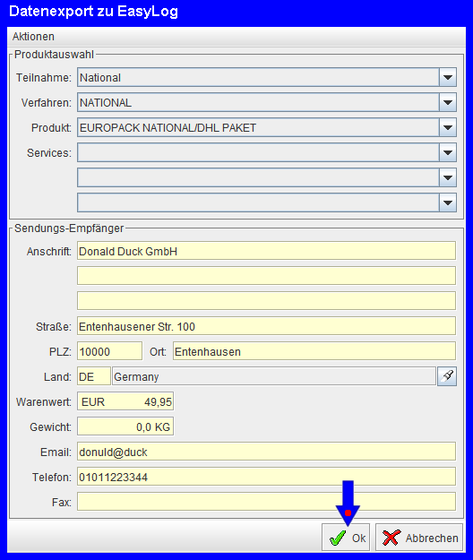 Entscheiden Sie sich mit DHL zusammenzuarbeiten und Ihre Kundenbestellungen per DHL versenden zu lassen, bieten wir hierfür eigens eine Schnittstelle für die DHL-Anbindung an. Von DHL bekommen Sie eine Software zur Verfügung gestellt (z.B. EasyLog V63), die Sie bei sich installieren müssen. Diese Installation wird in der Regel durch einen Mitarbeiter von DHL durchgeführt. So können Sie sich gleich die Funktionalitäten von EasyLog, die für Sie zum arbeiten wichtig sind, zeigen und erklären lassen. Hier werden Ihnen auch wichtige Daten mitgeteilt, die benötigt werden für die Einstellungen in unserer Konfiguration für die Kommunikation mit der Schnittstelle.