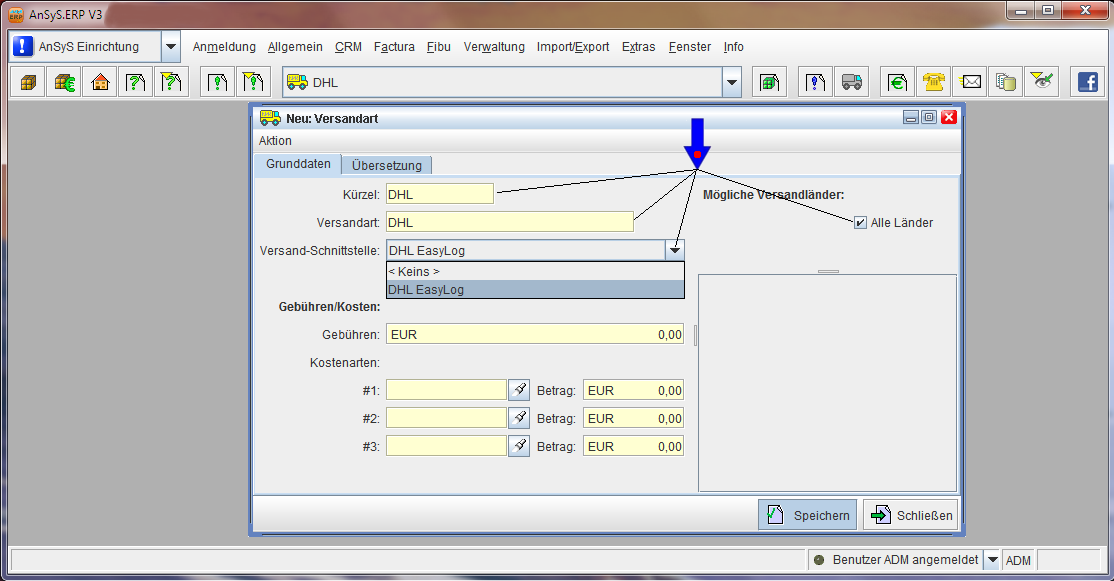 Versandkostenart und Versandart für DHL anlegen