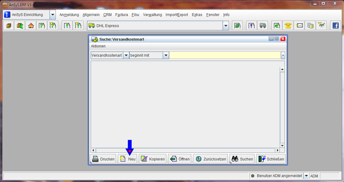 Sollten Sie mit mehreren Logistikern zusammenarbeiten, ist es notwendig, dass Sie auch die entsprechenden Versandarten anlegen. Diese sind in den Belegen später auswählbar. Das zeigen wir Ihnen in den nächsten Schritten. Zuerst legt man die 'Versandkostenarten' an. Dazu wechseln Sie in das Modul 'AnSyS Einrichtung'. Im angezeigten Menü wählen Sie 'Factura' und in der Auswahlliste 'Versandkostenarten'.