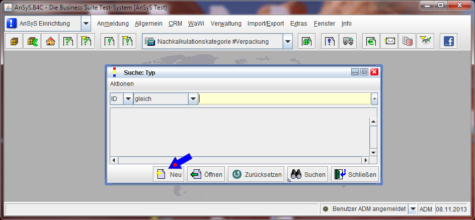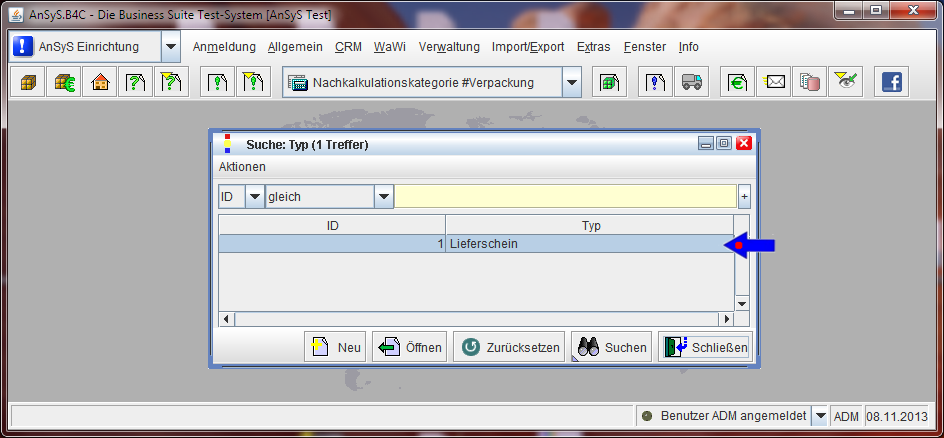 Wenn Sie nun in den Suchdialog wieder gehen, erscheint jetzt dieser neue Belegtyp.