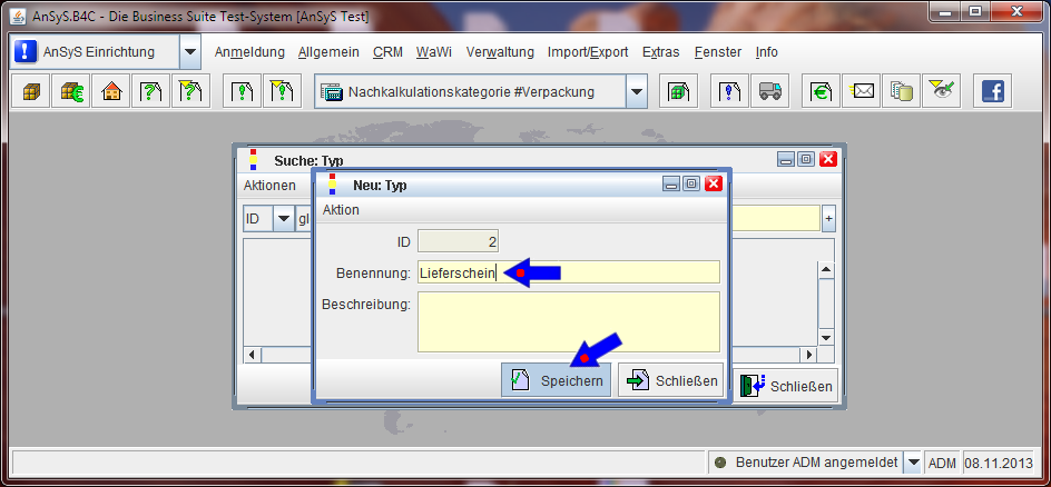 Als letztes müssen Sie nun alle vorgenommen Änderungen speichern. Danach geht es zu den Berechtigungen in der Rechtezuweisung, damit die Menüpunkte auch freigegeben werden, um damit arbeiten zu können. Das wäre dann der nächste Schritt.