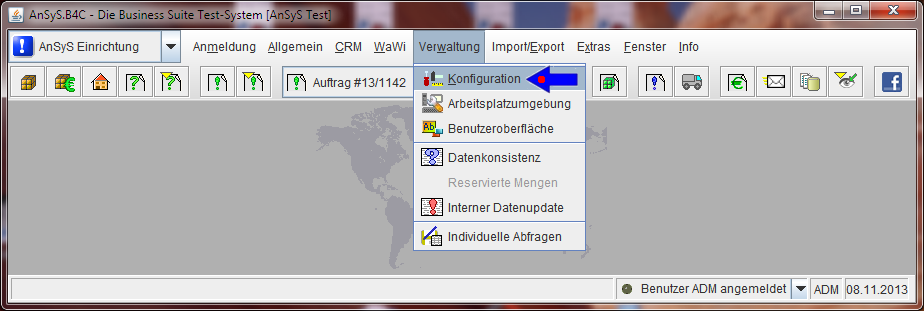 Als nächstes muss unser AnSyS.B4C einmal beendet und wieder neu gestartet werden. Es sind ja Änderungen in der Konfiguration und in den Rechtezuweisungen vorgenommen worden. Damit diese Änderung auch wirklich in vollem Umfang greifen, sollte man sich dieses Verfahren angewöhnen.