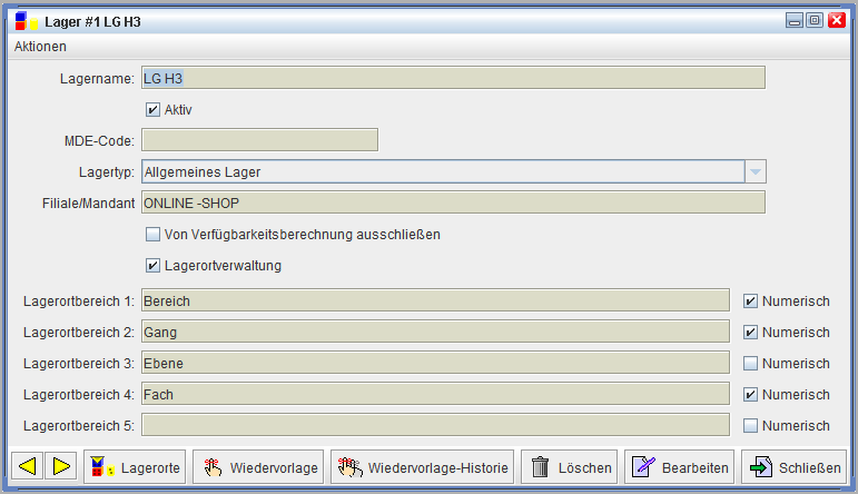 Möchten Sie jetzt Ihr Lager, um einen neuen Lagerort erweitern oder auch einen Lagerort entfernen, können Sie dies über den Button 'Bearbeiten' tun. Nach dem Klick auf diese Schaltfläche, zeigt sich Ihnen der unten abgebildete Dialog.