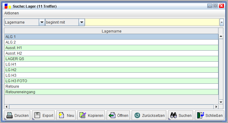 Mit einem Doppelklick oder über die Schaltfläche 'Öffnen', kommen Sie in die Lagerkonfiguration.