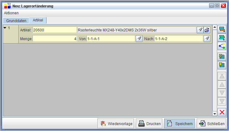 Soll von einem Artikel der Lagerort geändert werden, können Sie dies mit einer Lagerortsumbuchung bewerkstelligen.