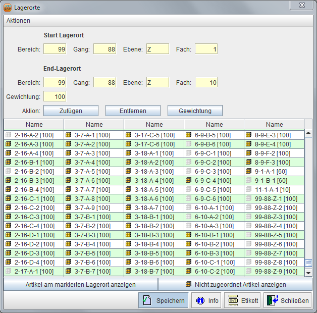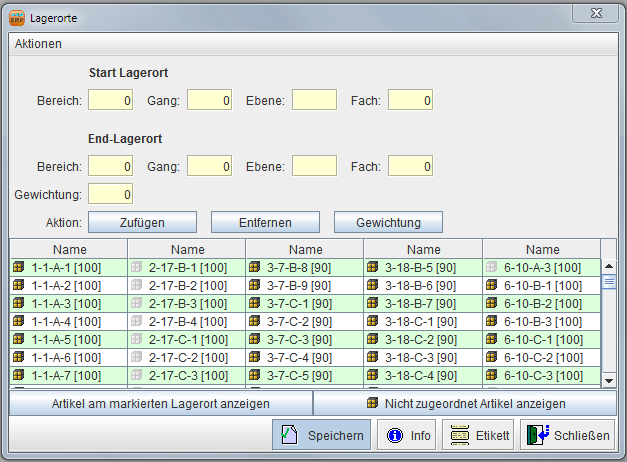 Sobald Sie nun bei Aktion auf 'Zufügen' den neuen Lagerort bestätigt haben, erscheinen diese auch direkt in der darunter liegenden Lagerortsliste.