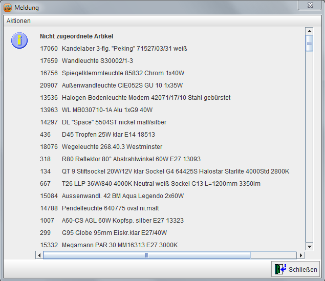 In diesem Dialog haben Sie auch die Möglichkeit, sich alle Artikel anzeigen zu lassen, die keinen zugewiesenen Lagerort aufweisen. Dabei klicken Sie einfach auf die Schaltfläche 'Nicht zugeordnete Artikel anzeigen'. Nun bekommen Sie einen Überblick der Artikel, die eben keinen eingetragenen Lagerort in den Stammdaten aufweisen.
