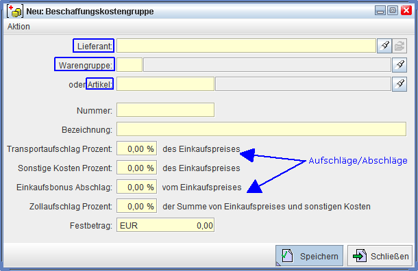 AnSyS Factura > Stammdaten > Beschaffungsnebenkosten
