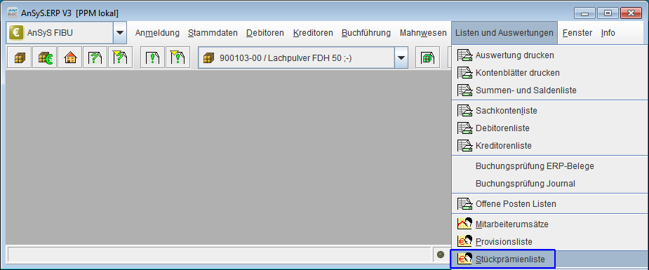 In der Ihnen dargebotenen Auswahlliste wählen Sie den Eintrag 'Stückprämienliste'. Es öffnet sich ein