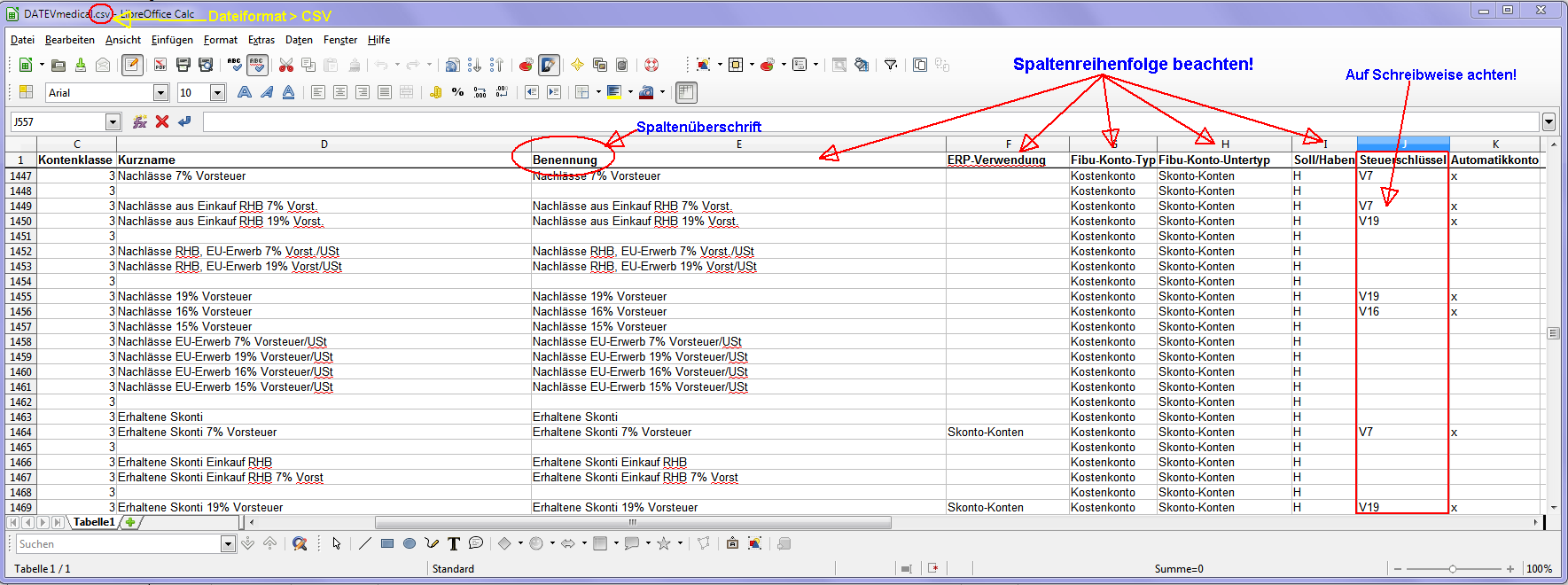 Aber nicht nur die Reihenfolge ist sehr wichtig, auch die Bezeichnung der Spaltenüberschriften.