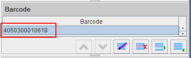 Nachdem Sie nun einen Artikel geöffnet haben, sehen Sie unter dem Reiter 'Artikel' auf der linken Seite nun den Bereich 'Barcode'. Über die Schaltfläche 'Neuen Eintrag anfügen' (drei kleine Balken mit grünem Dreieck) können Sie nun einen Barcode erfassen.