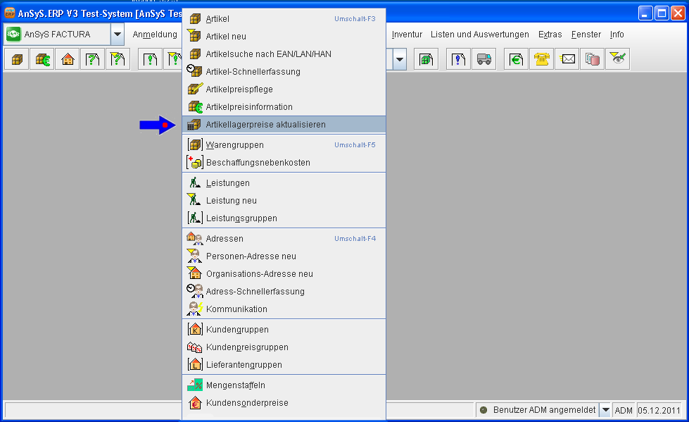 In unserem AnSyS.ERP bieten wir Ihnen zwei Möglichkeiten der Lagerbewertung an. Einmal die FIFO-Methode und zum zweiten die LIFO-Methode. Sie sollten sich im Vorfeld entsprechend informieren, für welche Methode Sie sich entscheiden. In der folgenden Dokumentation zeigen wir Ihnen, welche Schritte Sie für eine Lagerbewertung im einzelnen vornehmen müssen. Um einen eventuellen Datenverlust vorzubeugen, sollten Sie auf jeden Fall immer Ihre Daten im Vorfeld sichern. Auch sollten Sie sicherstellen, dass währen der Preisfixierung und Lagerbewertung alle Mitarbeiter sich im AnSyS.ERP abgemeldet haben und keiner mehr mit dem System arbeitet.