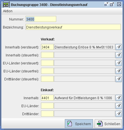 Nachdem Sie vorher alle Automatikkonten neu angelegt haben, können Sie nun das jeweilige neue Konto auswählen und die Einträge entsprechend mit diesen neu angelegten Konten abändern. Und das machen Sie mit jedem Eintrag in der Buchungsgruppe, wo die Änderung vorgenommen werden muss. Vergessen Sie nach jeder Änderung nicht das Speichern.