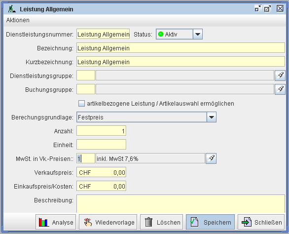 In unserem Beispiel zeigen wir Ihnen das mit dem Eintrag 'Leistung Allgemein'.
