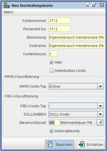 Die Kontonummer 3710 (in unserem Beispiel) ist angelegt als 'Eigenverbrauch Handelsware' mit dem alten Mehrwertsteuersatz von 7,6 %. Nach dem gerade beschriebenen Kopiervorgang müssen Sie nun die Einträge abändern, auch die Kontonummer. Die Nummer 3710 ist belegt, die Nummer 3711 ist auch belegt, als nächste freie und fortlaufende Nummer in diesem Kontonummernkreis wäre das die 3712. Diesen Eintrag nehmen Sie nun vor.