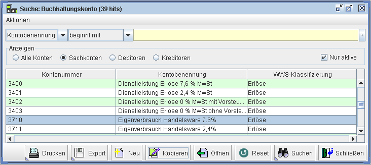 Für die Umstellung müssen überall dort neue Konten angelegt werden, wo ein Automatikkonto hinterlegt ist. Diese müssen dann mit den korrekten Steuerschlüsseln und Steuerarten verknüpft werden. Ändern Sie die Konten nur ab, wirkt sich dies auf alle bestehenden Belege in Ihrem System aus, die im Wirtschaftsjahr 2010 generiert wurden. Darum müssen die Automatikkonten alle neu angelegt werden! Ein Automatikkonto erkennt man, wenn in dem jeweiligen Konto ein 'Häkchen' bei Automatikkonto gesetzt ist. Beispiel: Gehen Sie in das Menü „Stammdaten“ BUCHHALTUNGSKONTEN und lassen nach Sachkonten suchen. Mit einem Doppelklick können Sie nun jedes Konto öffnen und prüfen, ob es sich hier um ein Automatikkonto handelt. Liegt ein Automatikkonto vor, ist es am einfachsten, Sie kopieren das bisher gültige Automatikkonto und ändern es entsprechend ab.