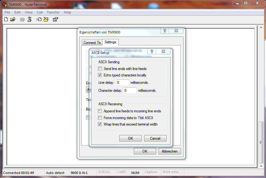 Die Verbindung zu dem Kellnerschloss TMR 900 wird über den 'Hyper Terminal' hergestellt. (Windows)