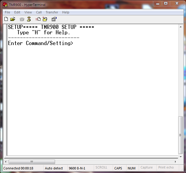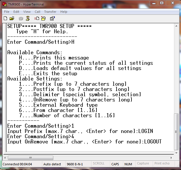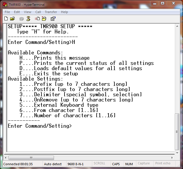 In Großbuchstaben eintippen: 'SETUP' Danach piepst das Gerät viermal und es erscheint die Kommandozeile für die weiteren Eingaben.