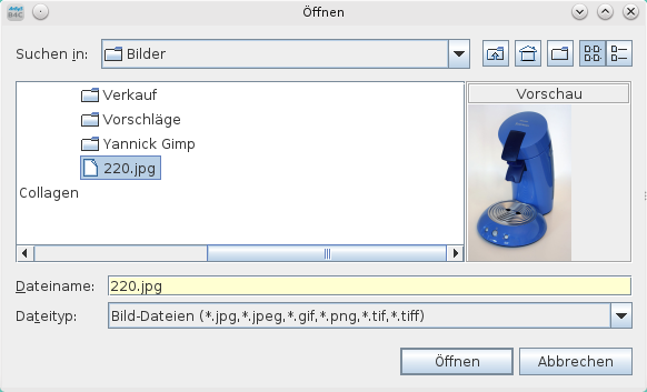 Um eine neue Beleg-Grafik anzulegen betätigen Sie die Schaltfläche "Neu" und der eigentliche Beleg-Grafiken-Dialog öffnet sich. Mit der Schaltfläche "Grafik hochladen", die sich am unteren Dialogrand befindet, können Sie eine Bilddatei, die lokal auf ihrem Rechner gespeichert ist, ins Programm laden. Die Bilddatei darf im png-,gif-,jpeg-,bmp- oder tiff-Dateiformat vorliegen. Wenn Sie die "Grafik hochladen"-Schaltfläche betätigen erscheint ein Datei-Auswahl-Dialog, der Ihnen auf der rechten Seite eine Vorschau der gerade ausgewählten Bilddatei zeigt. Wählen Sie dort die Datei, die Sie als Beleg-Grafik nutzen wollen und bestätigen Sie Ihre Auswahl mit der Schaltfläche "Öffnen". Daraufhin werden die Bildinformationen in die Datenbank geladen und der Name der Datei (ohne Endung), Breite und Höhe des Bildes werden in die jeweiligen Felder des "Übersicht"-Reiter im Dialog eingetragen.