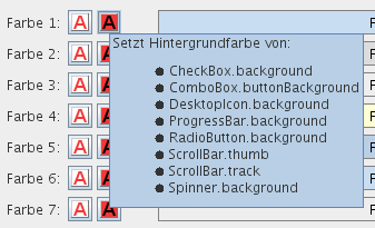 Wenn Sie eine dieser Schaltflächen mit der Maus überstreichen, wird eingeblendet auf welche Elemente sich die Farbwahl auswirkt:
