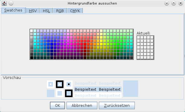 Beim Betätigen der Schaltflächen öffnet sich ein Farbauswahl-Dialog, in dem Sie Ihre Wunschfarbe aussuchen können.