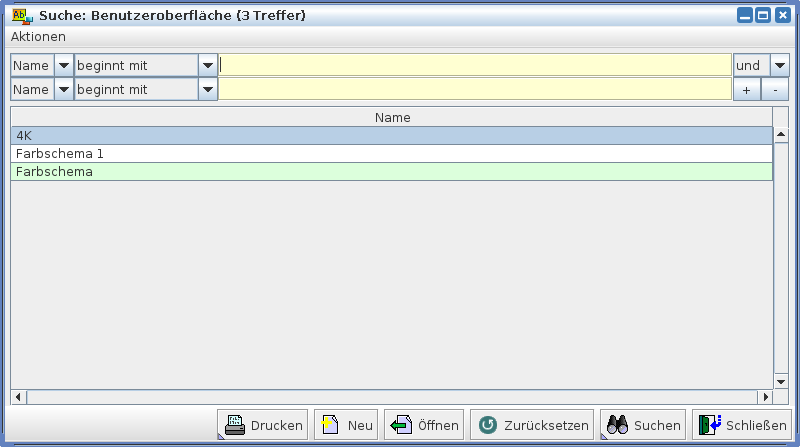 Wählen Sie diesen Menüpunkt aus, so öffnet sich der übliche Suchdialog. Dort können Sie nach einem vorhandenen Benutzeroberflächenschema suchen, neue Schemata erstellen oder ein vorhandenes Schema kopieren.