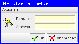Da nur registrierte Benutzer mit dem Programm arbeiten dürfen, wird nach dem Start automatisch in folgendem Bild nach der Eingabe eines Benutzernamens und eines Kennwortes gefragt: