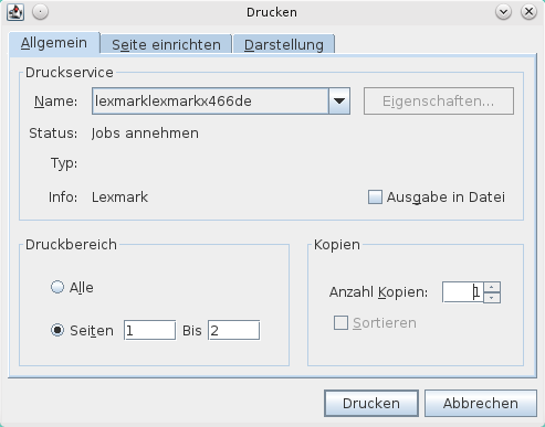 Wollen Sie einen anderen Drucker wählen oder Druckereinstellungen vornehmen, müssen Sie den Ausdruck mit der Schaltfläche [Druckereinstellungen] starten.