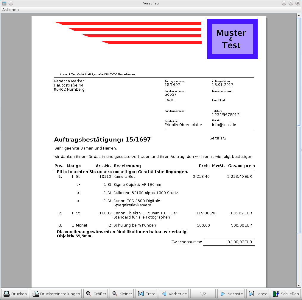 Das folgende Bild zeigt die Druckvorschau eines Angebots.