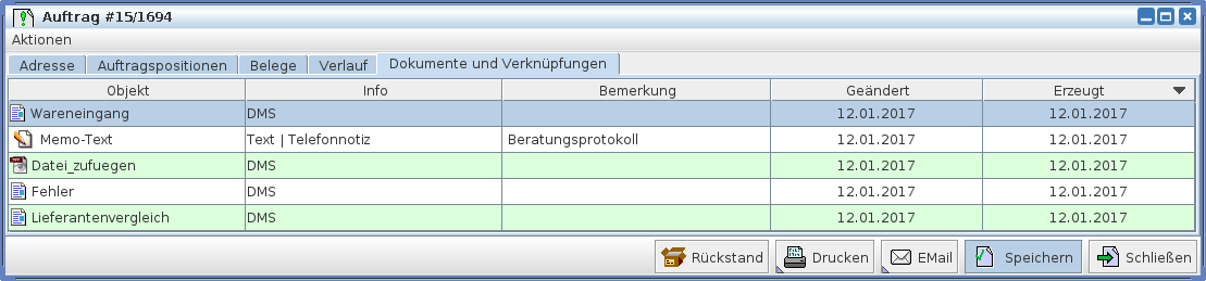 Im Reiter "Dokumente und Verknüpfungen" sehen Sie alle Dokumente, welche mit dem Auftrag Verknüpft sind.