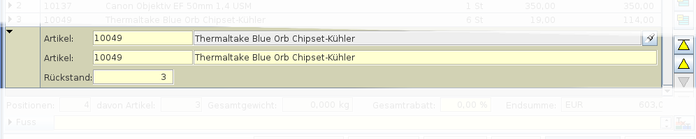 Mit den Rückstandspositionen können Sie Ihren Kunden auf der Rechnung oder dem Liefereschein Informationen über noch zu liefernde Artikel geben.