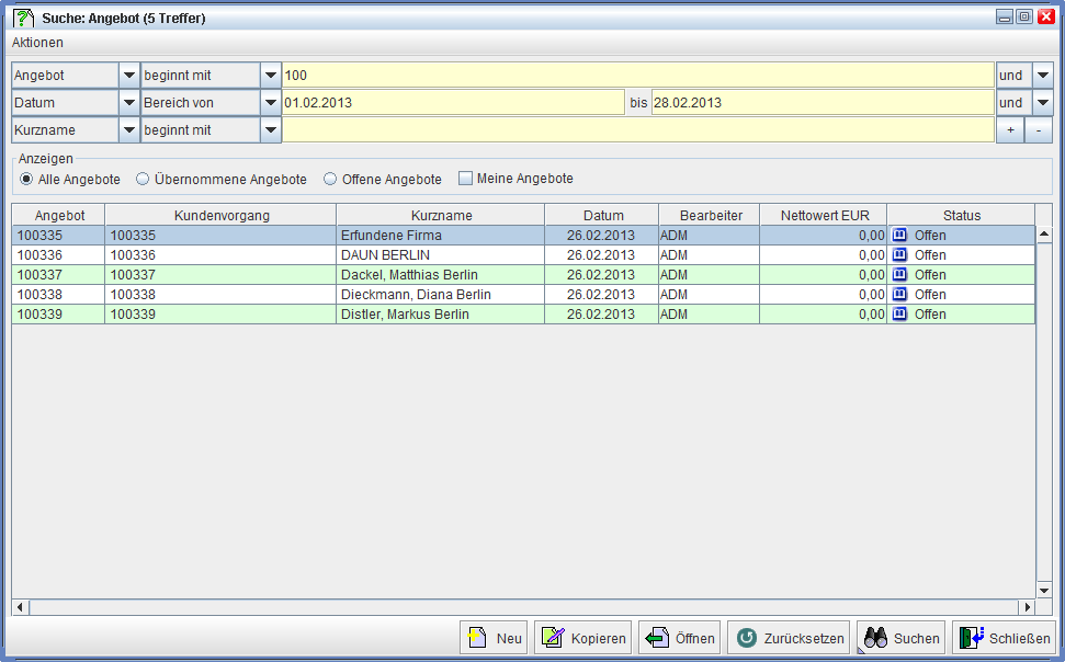 Als Beispiel hierfür sei die Einschränkung des Suchergebnisses der Angebotssuche auf offene Angebote oder/und die eigenen Angebote genannt.