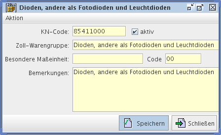 Wenn Sie mit der Neuzuordnung der Zoll-Warengruppen fertig sind, deaktivieren sie anschließend die überholten Zoll-Warengruppen. Gehen Sie in den Suchdialog ("Stammdaten" -> "Zoll-Warengruppen" ), suchen Sie die entsprechende Zoll-Warengruppe heraus und öffnen Sie diese. Im folgenden Dialog entfernen Sie das Häkchen vor "aktiv" und sichern Sie Ihre Änderung über die "Speichern"-Schaltfläche.