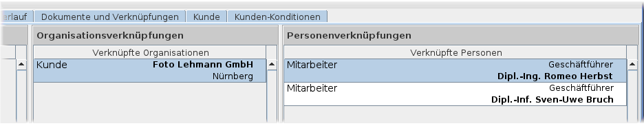 Zusätzlich besteht die Möglichkeit eine Adresse, egal ob Organisation oder Person in den "Weiteren Daten" mit anderen Organisationen und/oder Personen zu verknüpfen.