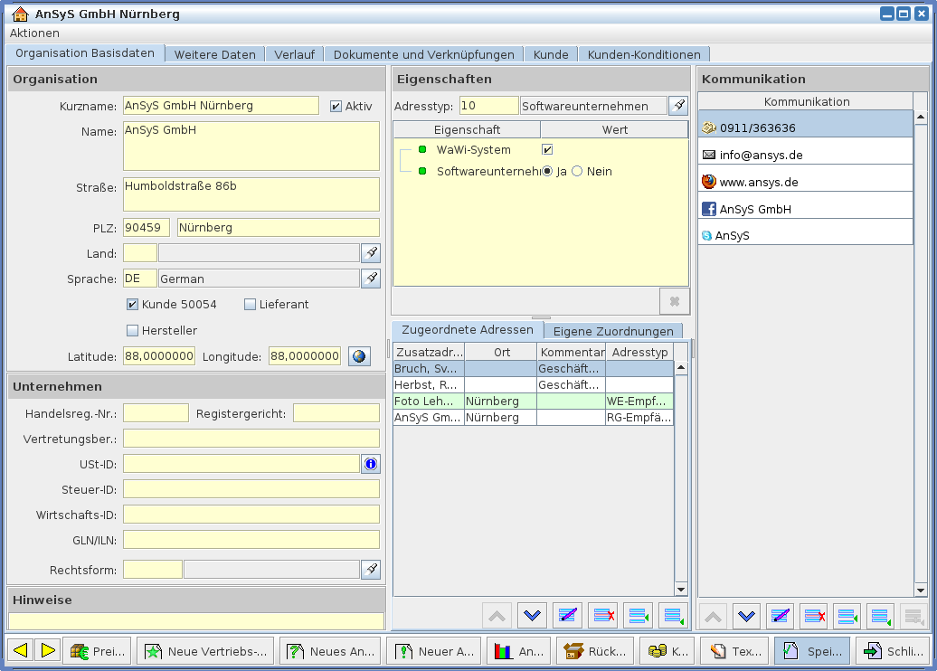 Unter dem Begriff Adressen werden in AnSyS SalesDate Adressen von Kunden, Lieferanten, Herstellern oder sonstige Adressen gespeichert.