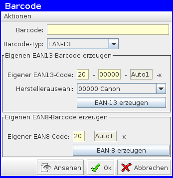 Zusätzlich kann man hier einen Barcode generieren, falls notwendig