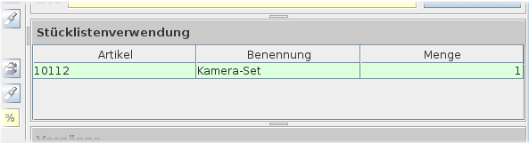 Im Dialog darunter findet man die Stücklistenverwendung. Sollte ein Artikel Verwendung in einer Stückliste haben, wird dies hier angezeigt mit der dazugehörigen Artikelnummer, Benennung und Mengenanzahl.