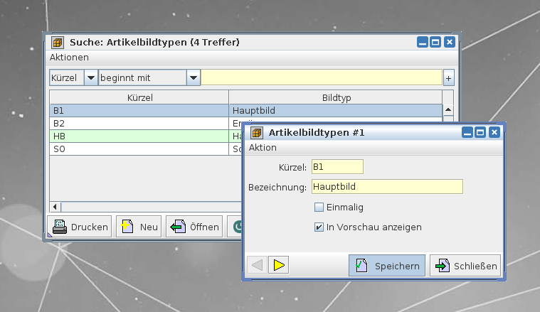 Wollen Sie die Bearbeitung des Artikelbild-Typs beenden, dann klicken Sie die Schaltfläche [Schließen] mit der linken Maustaste an oder betätigen die Taste ESC.