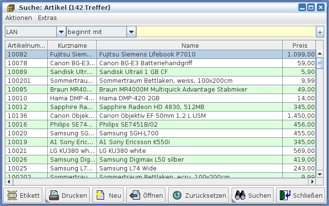 Wollen Sie die Suchliste der Artikel ausdrucken, dann klicken Sie die Schaltfläche [Drucken] mit der linken Maustaste an oder betätigen die Tastenkombination Strg-P.