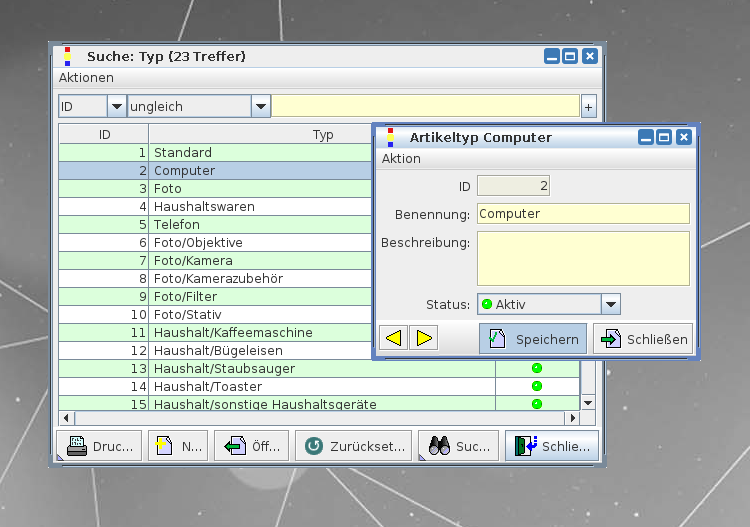 Es gibt eine Vielzahl an unterschiedlichen Artikeln, von kleinen Geräten zu großen Geräten, Zubehör und vieles mehr. Um die Artikel dementsprechend sortieren und einkategorisieren zu können, haben Sie in AnSyS.B4C einen eigenen Menüpunkt zur Erstellung von Artikeltypen. Damit können Sie ihre Artikel gleich zuordnen und behalten so einen besseren Übersicht bei der Suche nach einem bestimmten Artikel.