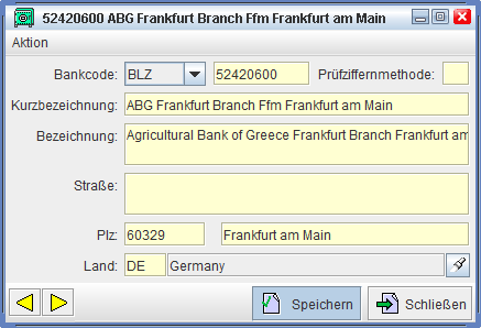 In diesem Bild werden die Daten zu einer Bank angegeben. Dabei haben die einzelnen Felder folgende Bedeutung: